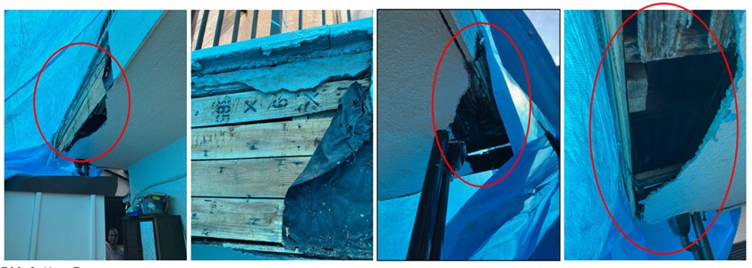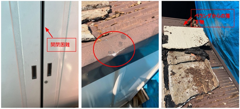 風災によるベランダの破損時の破片落下による物置の破損被害