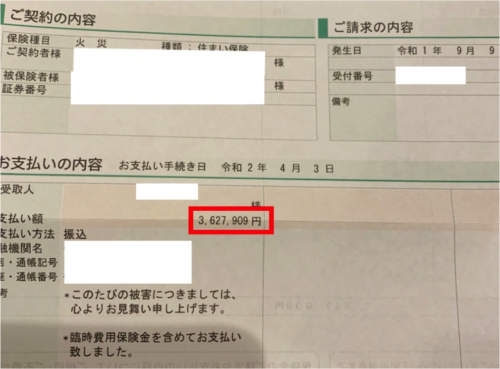 幸いこの物件の保険は「突発的な事故」全般に対応していたため問題なく保険申請することができました。