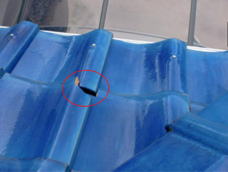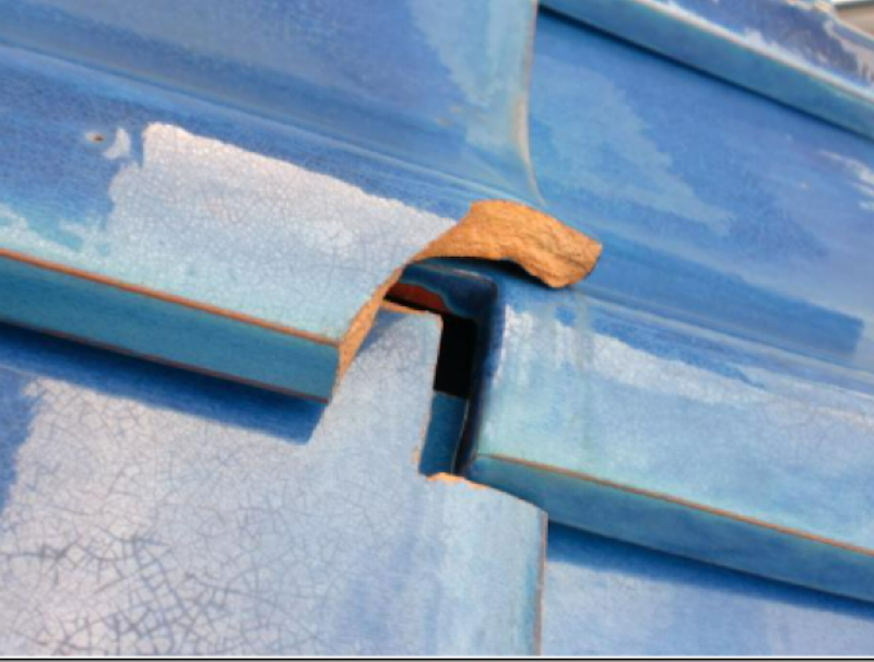 飛来物衝突による瓦の割れ