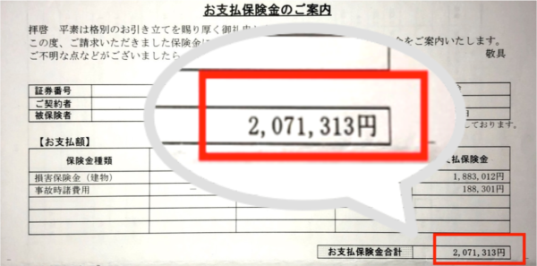 築古物件でしたが被害状況からして経年劣化とは考えにくく、その旨を詳細に説明することで無事200万円以上の認定となりました。